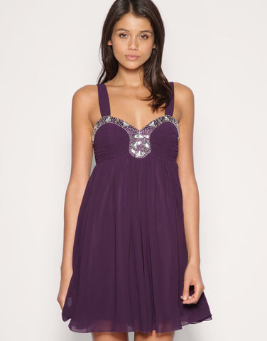 Babydoll dress by Lipsy, featuring jewel embellishment to the neckline, chiffon style overlay and pleating to the top. Model wears a UK 8 and her height is 177.5cm / 5'10".